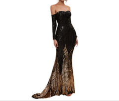 Be the star of the evening with this Twilight Sequin Tube Top & Off-Shoulder Evening Dress. Glamorous and chic, it features intricate sequin detailing and a versatile off-shoulder design. Perfect for any party or special occasion, this dress will make you stand out and shine.