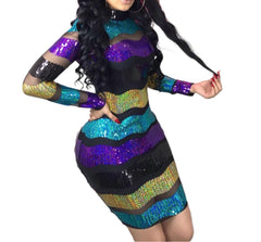 This stunning Women's Striped Multicolor Sequin Sparkling Party Dress will add a touch of glamour to any occasion. The multicolor sequins create a sparkling effect, while the striped pattern adds a unique touch. With a comfortable fit and eye-catching design, this dress is perfect for parties and special events.
